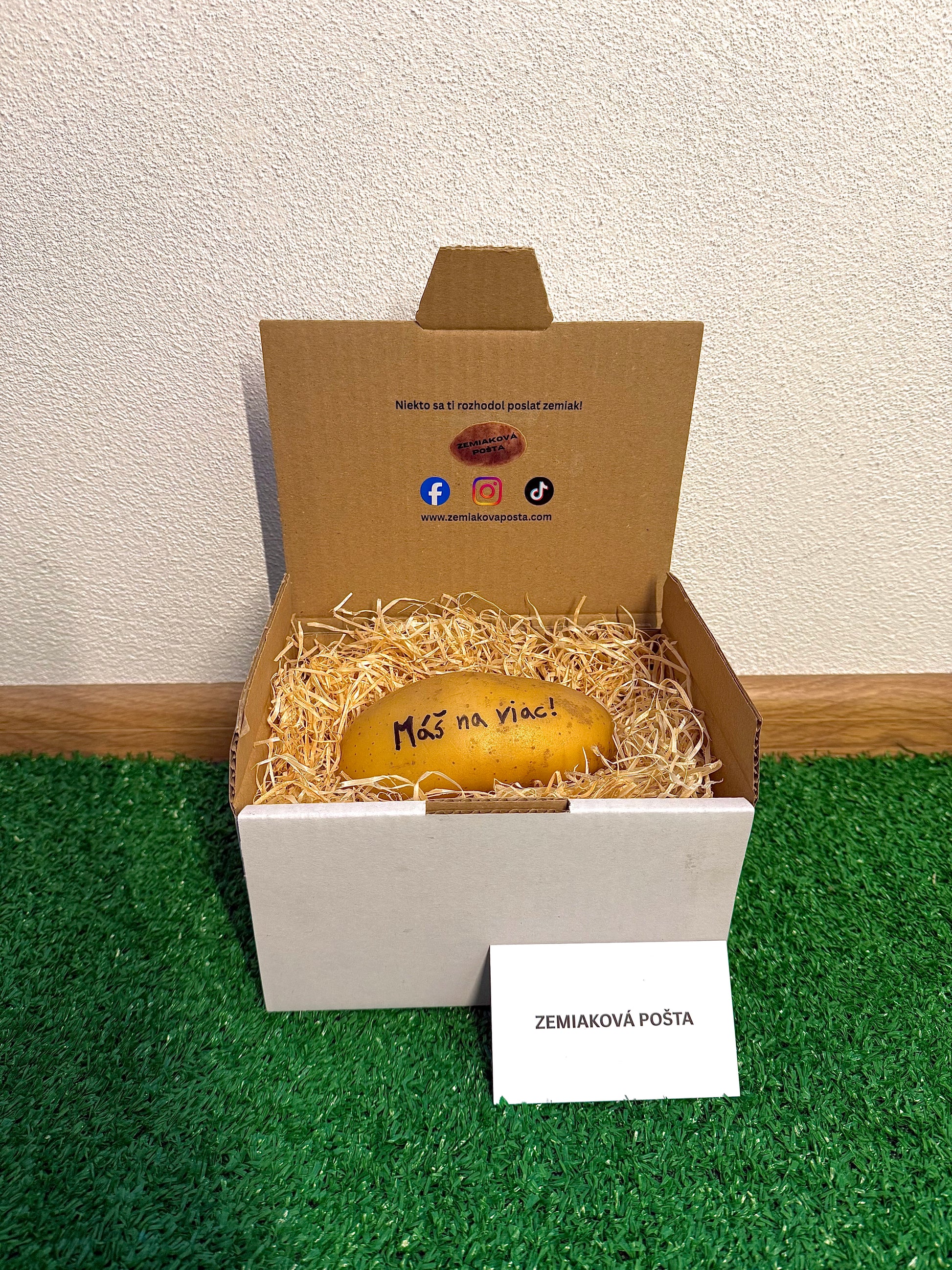 „Je to personalizovaná správa, ktorú vytlačíme alebo napíšeme priamo na zemiak a doručíme ju na zvolenú adresu. Ideálny spôsob, ako byť originálny a trochu netradičný.“